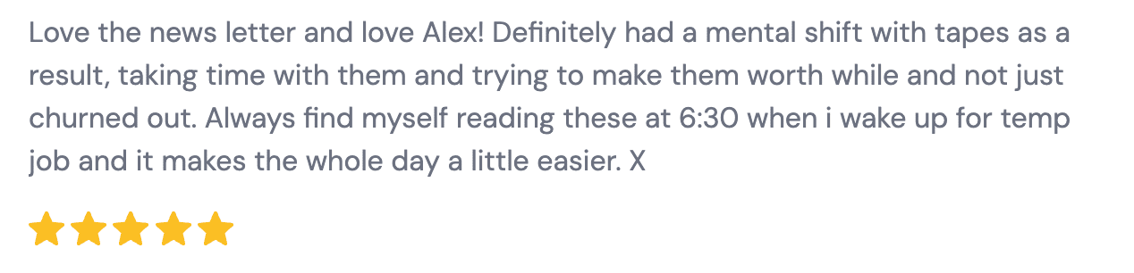 We want to always keep this newsletter free. If it has helped you in any way and you would like to give back - please consider leaving a testimonial below. It takes less than 2 minutes and you will have helped us out enormously. Thank you x