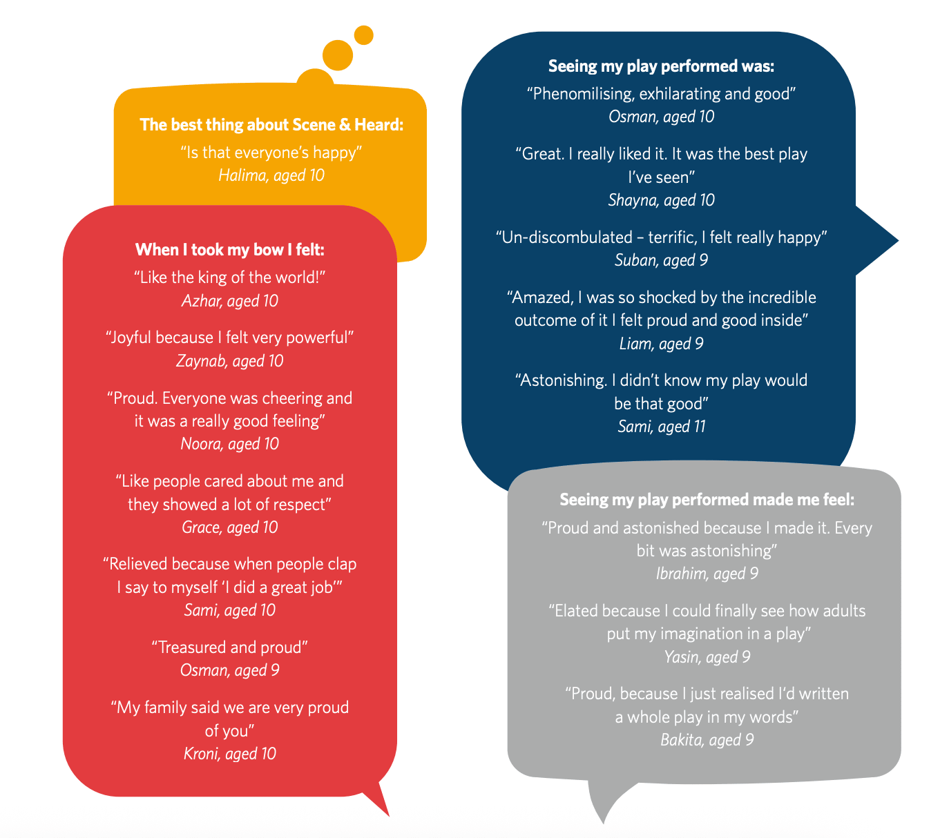 We give children intensive, one-to-one adult attention, enabling them to write plays which are then performed by professional actors.