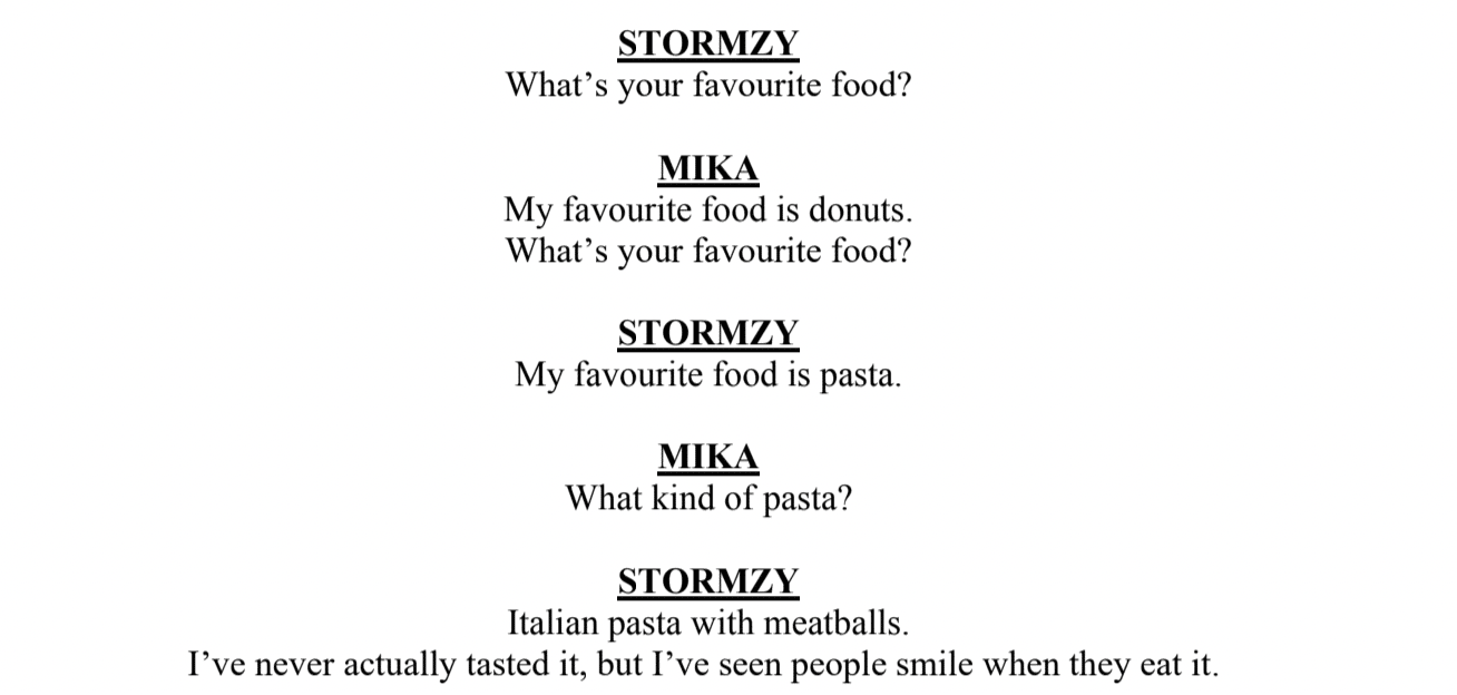 Here is an extract from the first play I was part of called "The Ice Crystal" in which I played Stormzy - a rainstorm (alongside Mika - a Chinchilla). It was written by an amazing kiddo, who was just incredible.