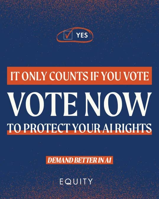 If you are eligible, you should have been emailed an Indicative Ballot from Equity. I encourage you to vote. The question is Would you strike if you were forced to be Ai scanned on set. Vote for what you feel is right.